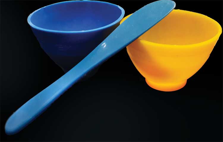 از کاسه های پلاستیکی برای مخلوط کردن گچ و آب برای ریختن مدل گچی استفاده میکنند.